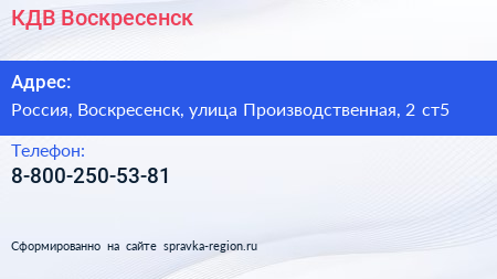 КДВ Воскресенск по адресу Кондитерская фабрика Гранъ, 2, Производственная улица, Гостилово, Федино, городской округ Воскресенск, Московская область, Центральный федеральный округ, 140207, Россия в дальнейшем Организация, размещена в следующих категориях: