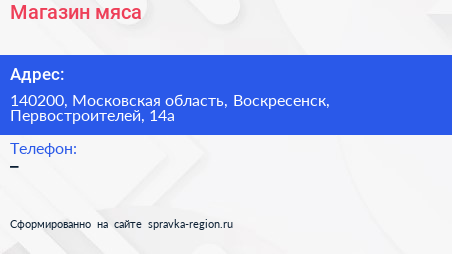 Магазин мяса по адресу 140200, Московская область, Воскресенск, Первостроителей, 14а в дальнейшем Организация, размещена в следующих категориях: