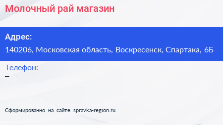 Молочный рай, магазин по адресу 140206, Московская область, Воскресенск, Спартака, 6Б в дальнейшем Организация, размещена в следующих категориях: