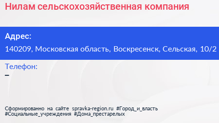 Нилам, сельскохозяйственная компания по адресу 140209, Московская область, Воскресенск, Сельская, 10/2 в дальнейшем Организация, размещена в следующих категориях: