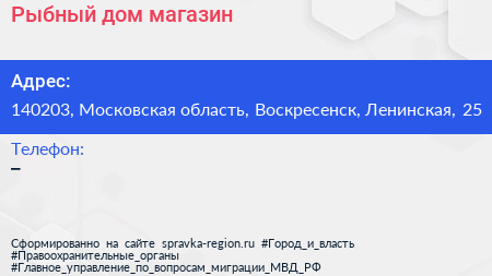 Рыбный дом, магазин по адресу 140203, Московская область, Воскресенск, Ленинская, 25 в дальнейшем Организация, размещена в следующих категориях: