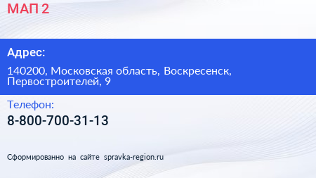 МАП №2 по адресу 140200, Московская область, Воскресенск, Первостроителей, 9 в дальнейшем Организация, размещена в следующих категориях: