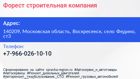 Форест, строительная компания по адресу 140209, Московская область, Воскресенск, село Федино, ст3 в дальнейшем Организация, размещена в следующих категориях: