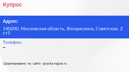Купрос по адресу 140200, Московская область, Воскресенск, Советская, 2 ст3 в дальнейшем Организация, размещена в следующих категориях: