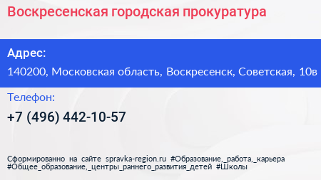 Воскресенская городская прокуратура по адресу 140200, Московская область, Воскресенск, Советская, 10в в дальнейшем Организация, размещена в следующих категориях: