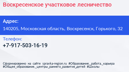 Воскресенское участковое лесничество по адресу 140205, Московская область, Воскресенск, Горького, 32 в дальнейшем Организация, размещена в следующих категориях: