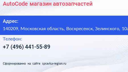 AutoCode, магазин автозапчастей по адресу 140209, Московская область, Воскресенск, Зелинского, 10а в дальнейшем Организация, размещена в следующих категориях: