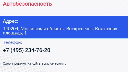 Автобезопасность по адресу 140204, Московская область, Воскресенск, Колхозная площадь, 1 в дальнейшем Организация, размещена в следующих категориях: