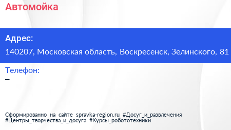 Автомойка по адресу 140207, Московская область, Воскресенск, Зелинского, 81 в дальнейшем Организация, размещена в следующих категориях:
