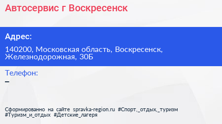 Автосервис, г. Воскресенск по адресу 140200, Московская область, Воскресенск, Железнодорожная, 30Б в дальнейшем Организация, размещена в следующих категориях: