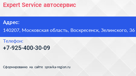 Expert Service, автосервис по адресу 140207, Московская область, Воскресенск, Зелинского, 36 в дальнейшем Организация, размещена в следующих категориях: