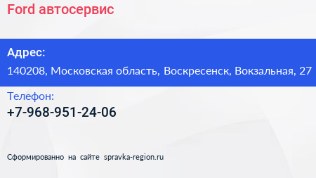 Ford, автосервис по адресу 140208, Московская область, Воскресенск, Вокзальная, 27 в дальнейшем Организация, размещена в следующих категориях: