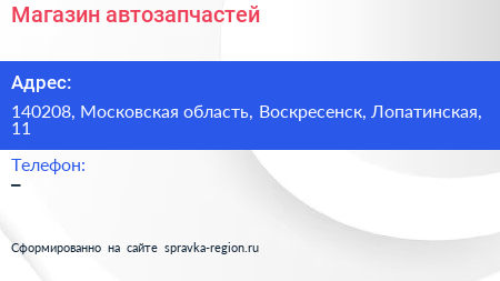 Магазин автозапчастей по адресу 140208, Московская область, Воскресенск, Лопатинская, 11 в дальнейшем Организация, размещена в следующих категориях: