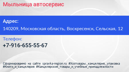 Мыльница, автосервис по адресу 140209, Московская область, Воскресенск, Сельская, 12 в дальнейшем Организация, размещена в следующих категориях: