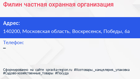 Филин, частная охранная организация по адресу 140200, Московская область, Воскресенск, Победы, 6а в дальнейшем Организация, размещена в следующих категориях: