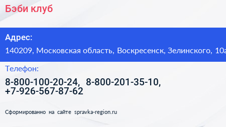 Бэби-клуб по адресу 140209, Московская область, Воскресенск, Зелинского, 10а в дальнейшем Организация, размещена в следующих категориях: