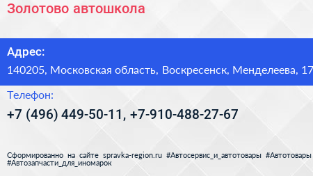 Золотово, автошкола по адресу 140205, Московская область, Воскресенск, Менделеева, 17 в дальнейшем Организация, размещена в следующих категориях: