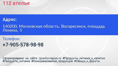 112, ателье по адресу 140200, Московская область, Воскресенск, площадь Ленина, 5 в дальнейшем Организация, размещена в следующих категориях: