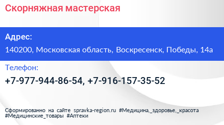 Скорняжная мастерская по адресу 140200, Московская область, Воскресенск, Победы, 14а в дальнейшем Организация, размещена в следующих категориях: