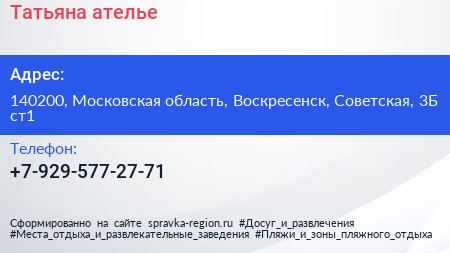 Татьяна, ателье по адресу 140200, Московская область, Воскресенск, Советская, 3Б ст1 в дальнейшем Организация, размещена в следующих категориях: