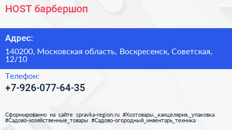 HOST, барбершоп по адресу 140200, Московская область, Воскресенск, Советская, 12/10 в дальнейшем Организация, размещена в следующих категориях: