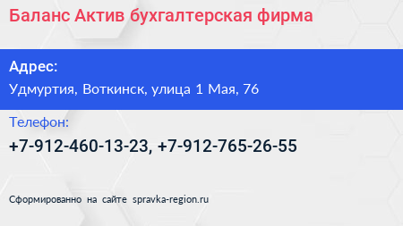 Баланс Актив, бухгалтерская фирма по адресу Удмуртия, Воткинск, улица 1 Мая, 76 в дальнейшем Организация, размещена в следующих категориях: