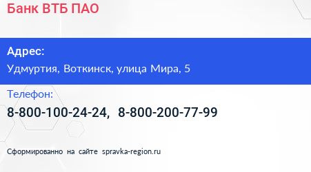 Банк ВТБ, ПАО по адресу Удмуртия, Воткинск, улица Мира, 5 в дальнейшем Организация, размещена в следующих категориях:
