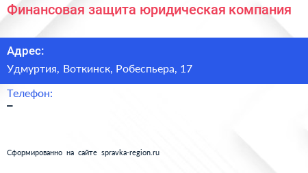 Финансовая защита, юридическая компания по адресу Удмуртия, Воткинск, Робеспьера, 17 в дальнейшем Организация, размещена в следующих категориях: