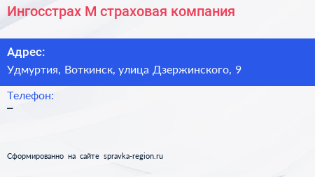 Ингосстрах-М, страховая компания по адресу Удмуртия, Воткинск, улица Дзержинского, 9 в дальнейшем Организация, размещена в следующих категориях: