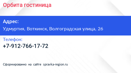 Орбита, гостиница по адресу Удмуртия, Воткинск, Волгоградская улица, 26 в дальнейшем Организация, размещена в следующих категориях: