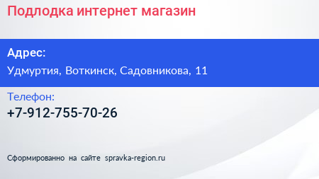 Подлодка, интернет-магазин по адресу Удмуртия, Воткинск, Садовникова, 11 в дальнейшем Организация, размещена в следующих категориях: