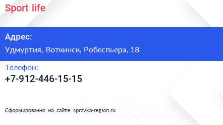 Sport life по адресу Удмуртия, Воткинск, Робеспьера, 18 в дальнейшем Организация, размещена в следующих категориях: