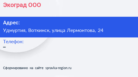 Экоград, ООО по адресу Удмуртия, Воткинск, улица Лермонтова, 24 в дальнейшем Организация, размещена в следующих категориях: