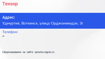 Тензор по адресу Удмуртия, Воткинск, улица Орджоникидзе, 3г в дальнейшем Организация, размещена в следующих категориях: