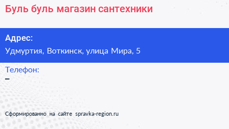 Буль-буль, магазин сантехники по адресу Удмуртия, Воткинск, улица Мира, 5 в дальнейшем Организация, размещена в следующих категориях: