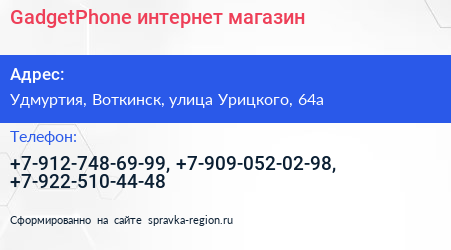 GadgetPhone, интернет-магазин по адресу Удмуртия, Воткинск, улица Урицкого, 64а в дальнейшем Организация, размещена в следующих категориях: