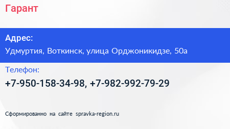 Гарант по адресу Удмуртия, Воткинск, улица Орджоникидзе, 50а в дальнейшем Организация, размещена в следующих категориях: