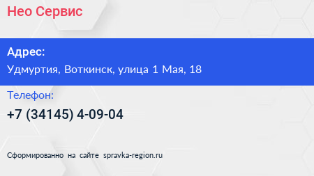 Нео-Сервис по адресу Удмуртия, Воткинск, улица 1 Мая, 18 в дальнейшем Организация, размещена в следующих категориях: