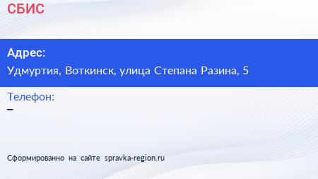 СБИС по адресу Удмуртия, Воткинск, улица Степана Разина, 5 в дальнейшем Организация, размещена в следующих категориях: