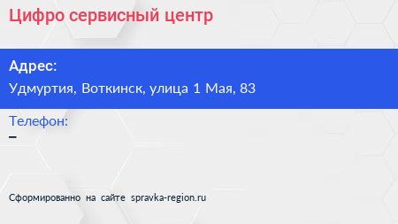 Цифро, сервисный центр по адресу Удмуртия, Воткинск, улица 1 Мая, 83 в дальнейшем Организация, размещена в следующих категориях: