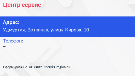 Центр-сервис по адресу Удмуртия, Воткинск, улица Кирова, 10 в дальнейшем Организация, размещена в следующих категориях: