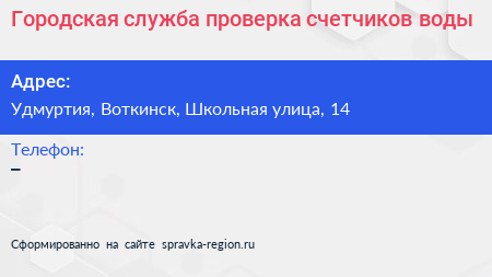 Городская служба проверка счетчиков воды по адресу Удмуртия, Воткинск, Школьная улица, 14 в дальнейшем Организация, размещена в следующих категориях: