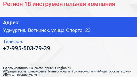 Регион 18, инструментальная компания по адресу Удмуртия, Воткинск, улица Спорта, 23 в дальнейшем Организация, размещена в следующих категориях: