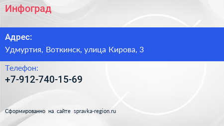 Инфоград по адресу Удмуртия, Воткинск, улица Кирова, 3 в дальнейшем Организация, размещена в следующих категориях: