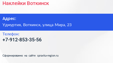 Наклейки Воткинск по адресу Удмуртия, Воткинск, улица Мира, 23 в дальнейшем Организация, размещена в следующих категориях:
