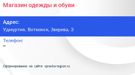 Магазин одежды и обуви по адресу Удмуртия, Воткинск, Зверева, 3 в дальнейшем Организация, размещена в следующих категориях: