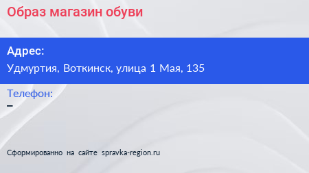 Образ, магазин обуви по адресу Удмуртия, Воткинск, улица 1 Мая, 135 в дальнейшем Организация, размещена в следующих категориях: