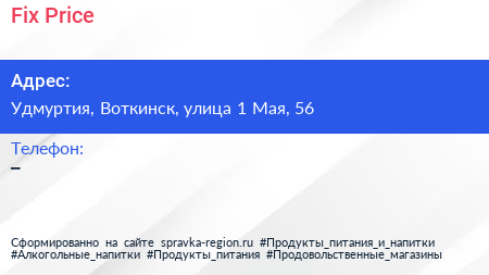 Fix Price по адресу Удмуртия, Воткинск, улица 1 Мая, 56 в дальнейшем Организация, размещена в следующих категориях: