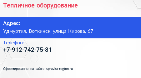 Тепличное оборудование по адресу Удмуртия, Воткинск, улица Кирова, 67 в дальнейшем Организация, размещена в следующих категориях: