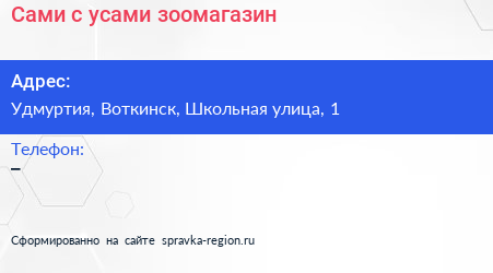 Сами с усами, зоомагазин по адресу Удмуртия, Воткинск, Школьная улица, 1 в дальнейшем Организация, размещена в следующих категориях: